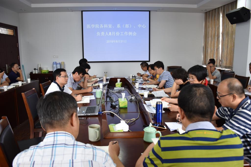 8月31日上午,学院召开各科室、系(部)、中心负责人8月份工作例会,全体院领导出席。会议由党委书记夏瑞明主持。