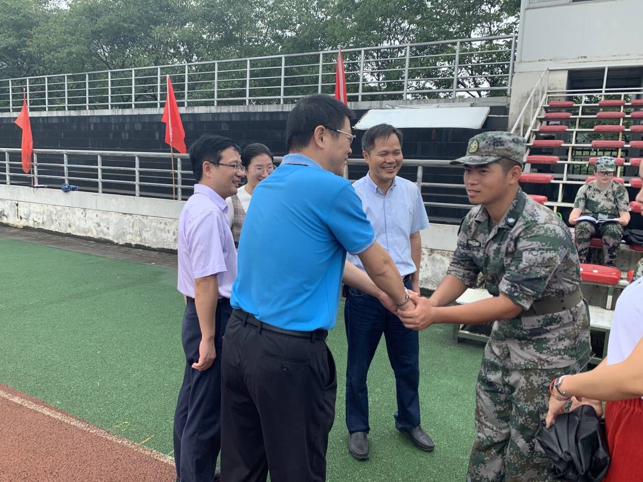 在现场,夏瑞明书记与教官亲切交流,了解了金沙官网2019级新生军训训练的实时情况,并表达了对他们认真负责工作的感谢。看到新生们迈出的整齐步伐,展现出了昂扬向上的精神风貌,夏书记充分肯定了这几天训练的成果,殷切鼓励军训新生们要向教官学习,努力培养吃苦耐劳的精神、坚毅勇敢的品质。葛副院长、金副书记则叮嘱同学们要注意天气变化,不要忘记吃早餐,注意自身的身体状况,同时提醒指导员们要切实关心同学情况,做到有效引导与督促。