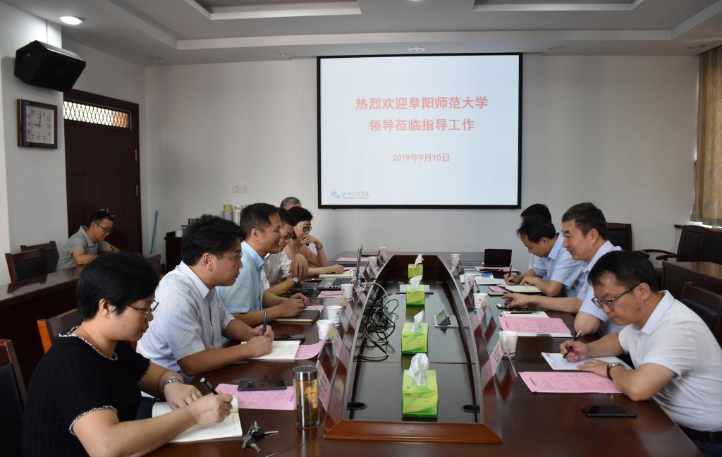 夏瑞明书记对考察团的到访表示欢迎,他简要介绍了学校、学院的基本情况。丁超主任介绍了阜阳师范大学的基本情况,并就来访的目的和需求进行了说明。他指出阜阳师范大学与我校同为师范院校,有着相同的发展历程,目前阜阳师范大学正在筹建金沙2004路线js5,前期需要广泛调研,存在的困难与问题诸多,希望金沙官网的办学经验能提供借鉴。