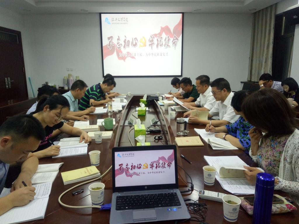 根据校党委“不忘初心、牢记使命”主题教育部署安排,金沙官网于9月19日晚上开展了“不忘初心、牢记使命”主题教育集中自学。学习内容包括《习近平关于“不忘初心、牢记使命”重要论述选编》《习近平新时代中国特色社会主义思想学习纲要》《干在实处走在前列》《“不忘初心、牢记使命”主题教育学习资料汇编》和党章等。集中自学活动在南山校区1号楼219会议室进行,金沙2004路线js5党委会全体成员以及中层干部参加。
