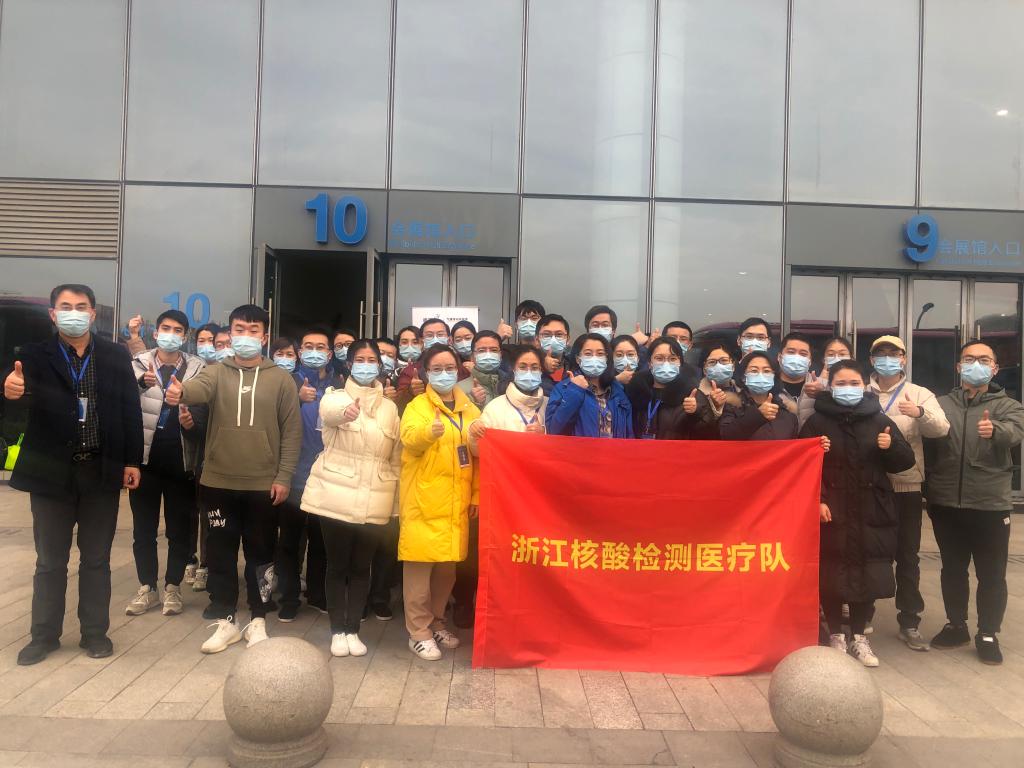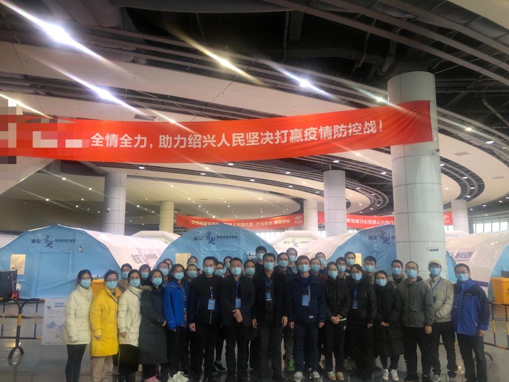 12月7日起,浙江省卫健委紧急调配组装了3个气膜方舱实验室,在绍兴启用城市核酸检测基地,抽调数百名省内外专家承担核酸检测工作,于12日24时前建设完成并投入使用。12月12日上午,田国强校友接到上级指示,奉命做好核酸检测检验工作人员的医疗保障工作。他当即二话没说,带领3位工作联络人员进驻各自的工作岗位。13日晚上,上级部门又要求医院派出医务人员帮助核酸检测检验的初始工作。14日上午11时,一支由30个医务人员和1名联络员组成的检验辅助人员队伍加入方舱实验室,直到21日下午结束任务。为本地区人员开展多轮核酸采样检测完成最后的PCR检验工作,整整8天不分昼夜地完成了几百万份的检测工作任务,有时候甚至是半夜12点、凌晨2点分组进舱做好相应工作,为我市疫情防控工作做了很大的贡献。