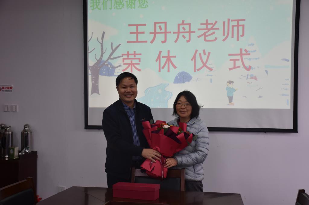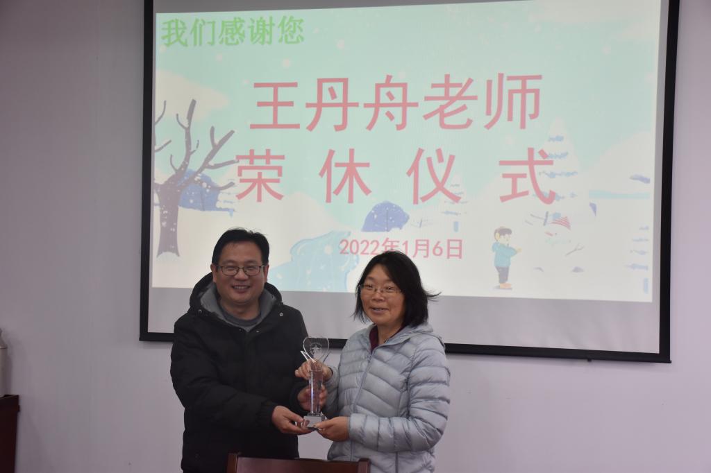 1月6日,学院在219会议室举行王丹舟老师的荣休仪式。院党委书记夏瑞明、党委副书记金坚强、副院长张剑,职能部门和系部负责人、教师代表参加仪式。仪式由分工会主席吴建红主持。