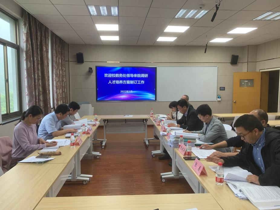 5月12日下午,校教务处处长陈伟鸿,副处长方小利、孙燕一行来院就2022版人才培养方案制定工作进行专题调研。调研会在财贞楼503教室进行,副院长张剑陪同调研。
