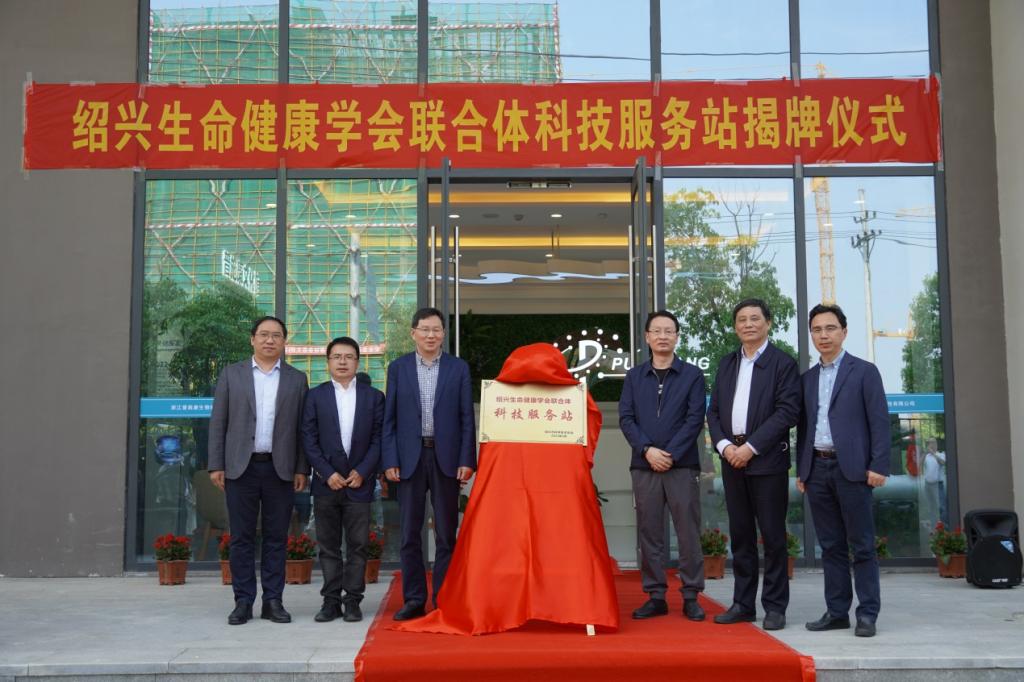 市科协副主席袁承华,市卫生健康委基层卫生与妇幼健康处处长孙奇峰,金沙2004路线js5党委书记、院长郭航远,市医学副会长兼秘书长、绍兴生命健康学会联合体秘书长阮伯金,绍兴第二医院副院长唐欧杉,绍兴市政协委员、普施康总经理余波共同为生命健康学会联合体科技服务站正式成立揭牌。