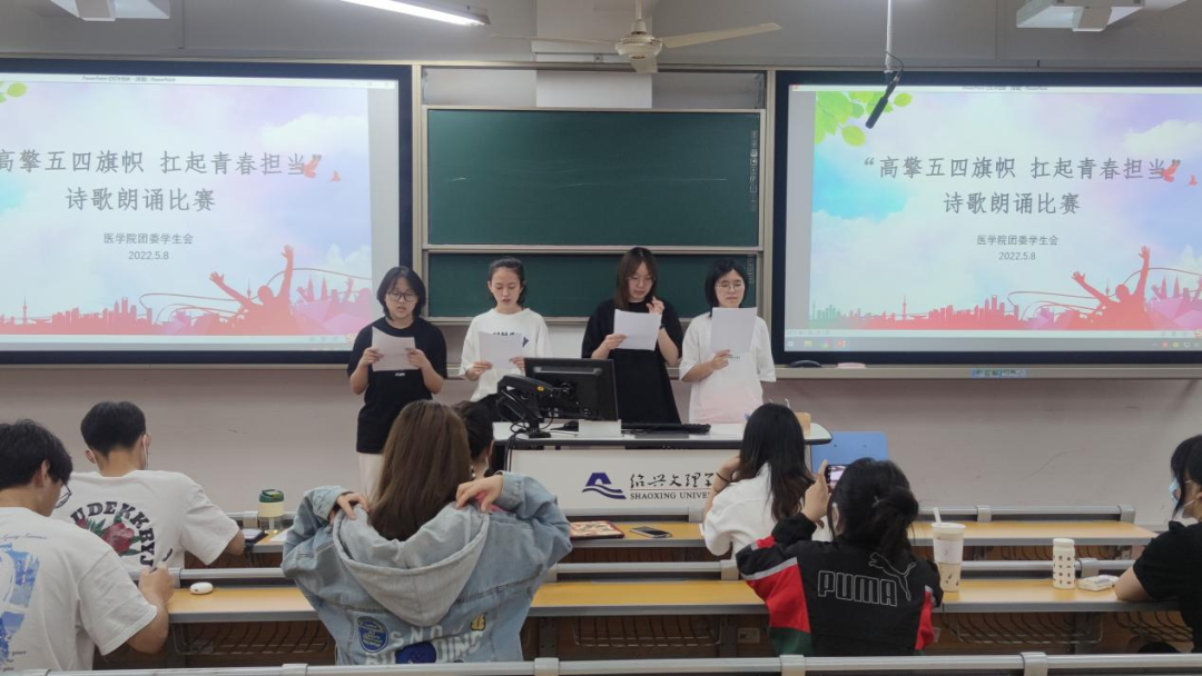 每位参赛选手激情昂扬的朗诵,都展现了我们绍医学子自身的激情青春,那积极向上的精神风貌振奋着在场的每一位观众,也增强了全体学生凝聚力和向心力,让我们在青春的赛道上奋勇奔跑,传承五四精神,赓续青春血脉,力争跑出最优秀的自己。