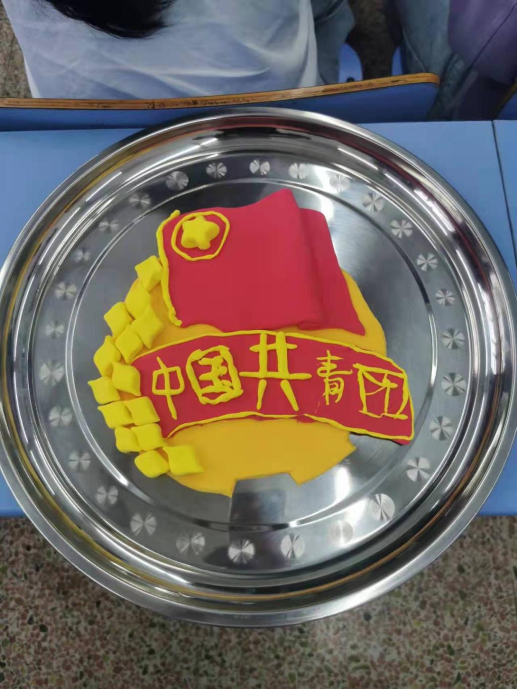 团支书将团支部成员分为四组,分别负责团徽的四个组成部分——团旗、齿轮、麦穗、有“中国共青团”五字的绶带。最后将各个部分组装在一起构成一个完整的团徽。团徽象征着共青团在党的思想的光辉照耀下,团结各族青年,朝着党所指引的方向奋勇前进,这也是习近平总书记在共青团成立100周年大会上所要传达的精神。