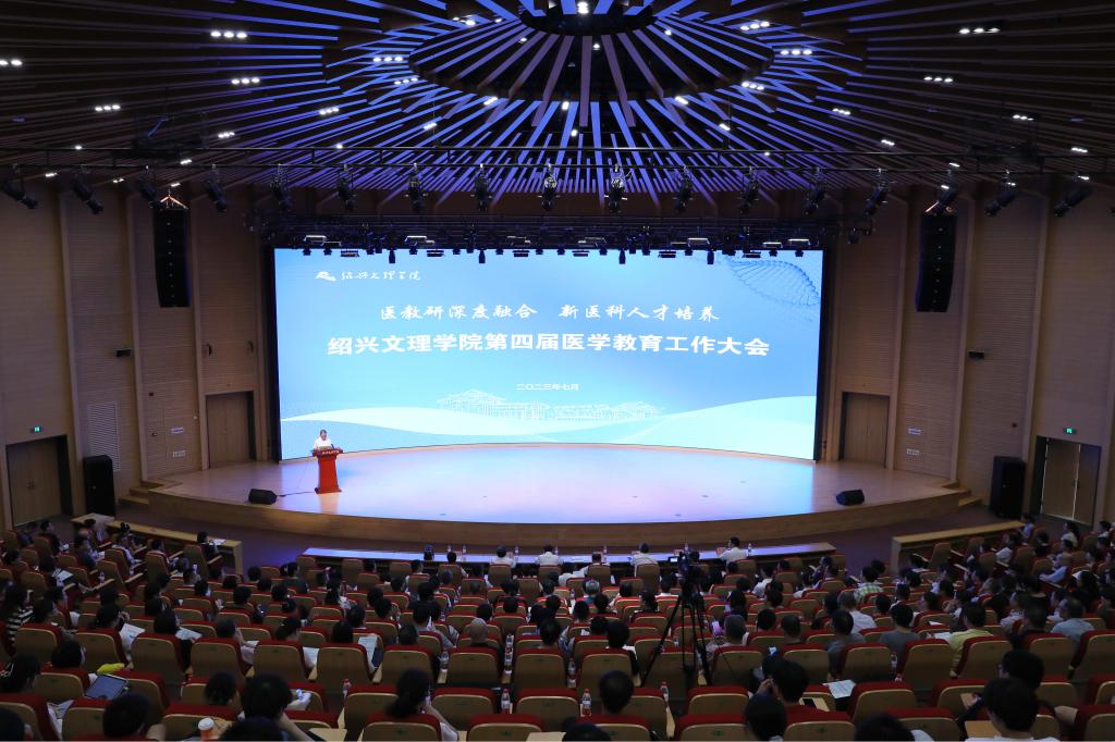 7月29日,学校第四届医学教育工作大会在风则江大讲堂举行。学校校长赵阳,绍兴市卫健委党委书记、主任王宏达,副校长柳国庆、副校长黄坚,校党委委员、学院院长,校附属第一医院院长蔡斌、校附属医院党委书记夏瑞明、校附属医院执行院长方兴亮、校附属中心医院党委副书记(主持工作)屠传建、校附属上虞医院党委书记龚月江、校附属嵊州医院院长杨松斌、校附属新昌医院党委书记姚灿珍、校附属诸暨中医医院院长戚坚永、诸暨市人民医院院长周岳松、绍兴市疾病预防控制中心党委书记、主任徐来潮,绍兴市继续医学教育和医学学术交流管理中心主任孙琴芳、绍兴市护理学会副理事长兼秘书长张园芳,学校办公室、教务处、研究生院、教育质量评估中心、各附属医院、研究生培养基地、教学医院、实习医院、社区卫生服务中心、绍兴市医学会医学教育分会的负责人,金沙2004路线js5党政班子成员和各科室、系部、中心负责人,2023级全体硕士研究生近300余人参加大会。学院党委书记吴剑平主持大会。