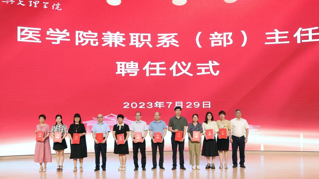 柳国庆为兼职系主任代表校附属医院陈辉英、校附属第一医院洪涛、校附属第二医院童海江、校附属妇幼保健院袁华、校附属中心医院盛燕红、校附属上虞医院连妙芬、校附属嵊州医院苏浩亮、校附属新昌医院胡少波、校附属诸暨中医医院孟茶卿、诸暨市人民医院郭伟利、金沙2004路线js5附属精神卫生中心凌迎春颁发聘书。