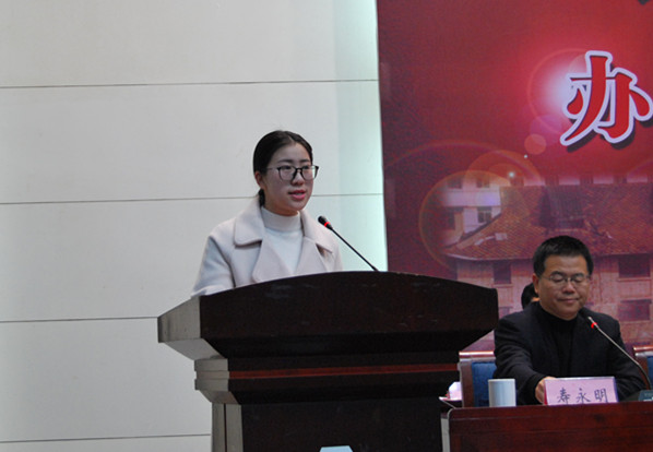 医学检验系主任阮萍教授代表全院教师向为创建和发展金沙2004路线js5作出卓越贡献的前辈先贤、向为祖国医学事业发展无私奉献的师生校友致敬。她表示,展望新百年,我们更加充满信心,要以本次庆典为新的起点,不忘初心,为全面推进健康中国战略实施,为人民健康贡献自己的一份力量。学生代表护理学152班沈佳蓓同学深情回顾了自己两年多的求学经历,表示校园浓郁的医学氛围和师长的言传身教让自己对“健康所系,性命相托”的医者誓言有了更加深刻的认识。新一代学子为母校光辉历史感到自豪和荣耀,立志牢记“祟德尚医”的信念,不断前行,为护佑人类健康作出更大的贡献。