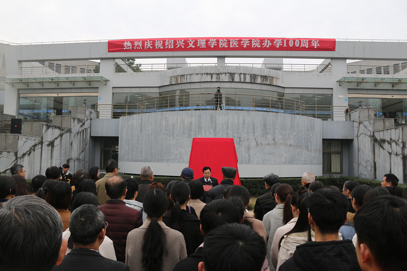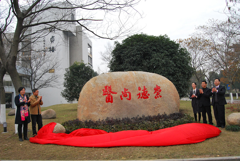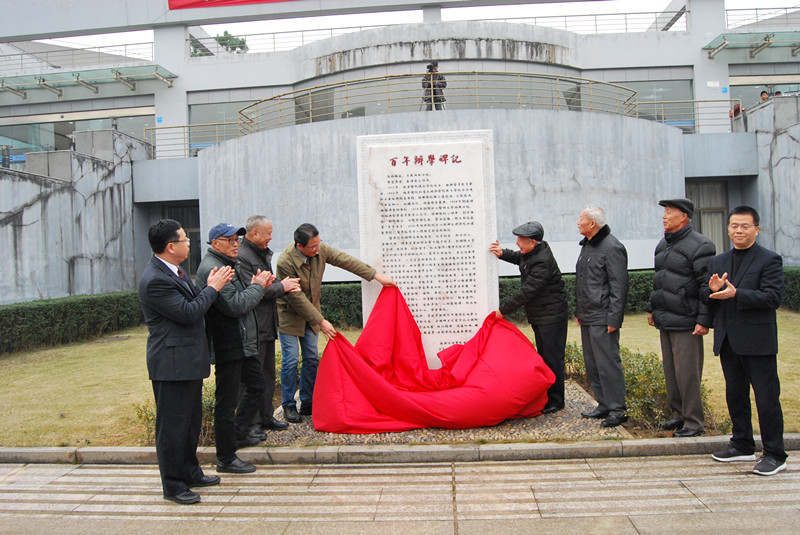 寿永明、任光圆、柳国庆、洪立昌、王建华、朱家敏、解保康、朱士雄为百年办学纪念碑揭碑;寿永明、杨大明、柳国庆、王晓霞与何竺阳同学一起为院训石揭幕。