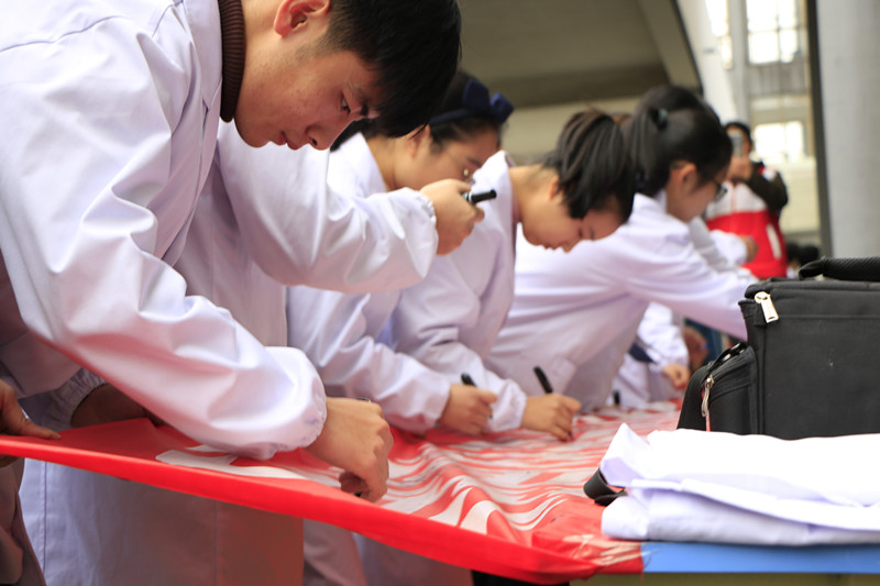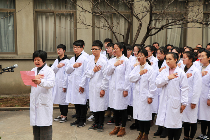 全体师生在临床医学部主任黄丹文的领誓下,郑重宣誓“健康所系,性命相托……”。