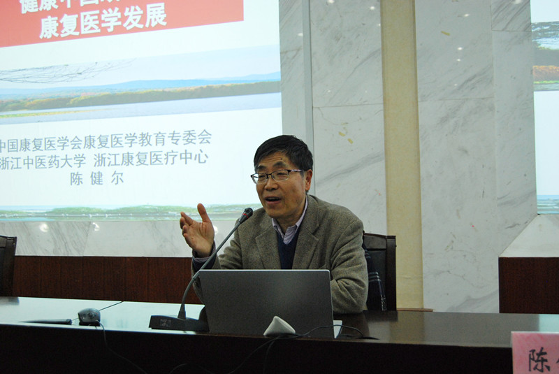 下午,金沙2004路线js5原副校长陈健尔教授在财贞楼二楼报告厅作题为“健康中国战略下的康复医学发展”的专题讲座。康复医疗学专业全体师生聆听了讲座。讲座由康复医学系主任吴建红主持。