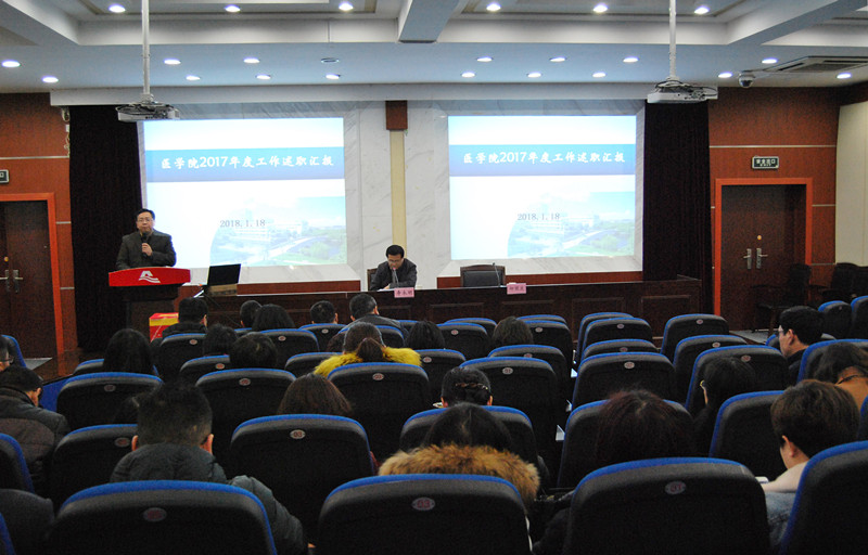 校党委委员、院党委书记柳国庆从重大工作、常规工作和创新工作三个方面代表学院领导班子作2017年度工作述职。他指出,成功申报临床医学专业硕士点是学院工作的重大突破,对金沙官网及绍兴医学教育发展具有里程碑的意义。随后,他从临床医学专业整改、师资队伍建设、新生招录、学生学科竞赛和考研、教学改革、实验室建设、社会服务及党建和思政工作等9个方面进行了总结。他说,2017年,学院还成功举办了办学百年系列纪念活动,所取得成绩可圈可点,但发展中也存在一些问题,如:师资队伍建设依然较为薄弱,科学研究没有取得突破,医教协同推进不够,管理科学化、精细化有待加强。