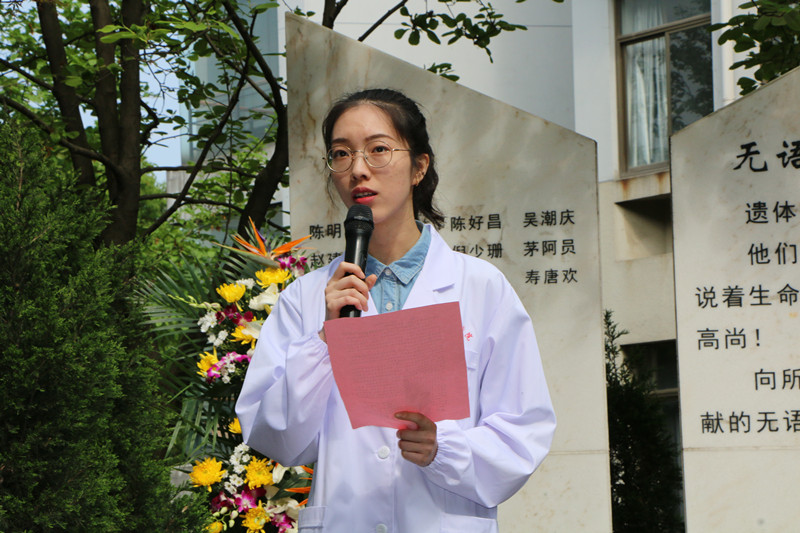 学生代表何竺阳在发言中回顾了自己第一次上解剖课时的情景,她表示自己将不负无语良师的夙愿,努力学习知识,竭尽全力解除人类病痛,为祖国医药卫生事业的发展和人类身心健康奋斗终生。