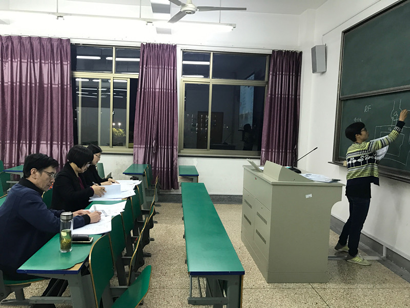 4月18日晚,金沙官网在财贞楼四楼小教室举行2018年教师资格认定教学基本素质和能力测试。张剑副院长、各系部主任、教学督导、教研科和教师发展中心负责人担任评委。