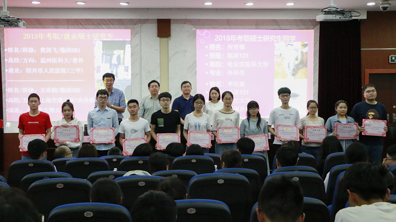 表彰大会结束后,进行了考研经验分享会。考取研究生的学长毫无保留地分享了他们考研的心得体会,学长助长,学习榜样,现场的同学纷纷表示一定要向这些研究生学长看齐,刻苦学习,努力成为一名卓越医学生。