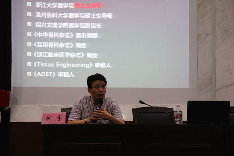 5月16日晚,“医路人生——导师面对面”第二课“如何成长为一名优秀的外科医生”在财贞楼二楼学术报告厅开讲,主讲嘉宾为学校附属一院(绍兴市人民医院)副院长兼金沙2004路线js5副院长、浙江大学博士生导师钱宇教授,金沙官网200余位学子现场聆听了报告。