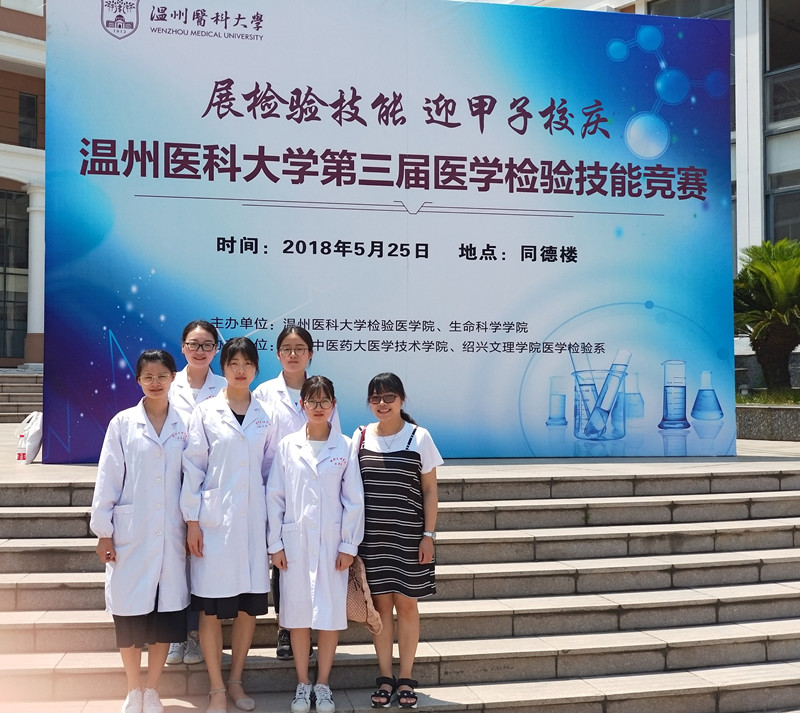 5月25日,温州医科大学第三届医学检验技能竞赛在温州医科大学同德楼举行。由金沙官网医学检验技术151班5位学生组成的金沙2004路线js5代表队在竞赛中荣获团体三等奖,楼倩、徐菲菲分获个人三等奖。