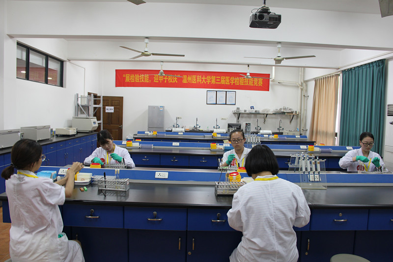 本次竞赛由温州医科大学检验金沙2004路线js5、生命科学学院主办,浙江中医药大学医学技术学院、金沙2004路线js5医学检验系协办。竞赛旨在培养医学检验技术专业大学生的社会责任感、创新意识、团队精神和实践能力,增强医学检验技术本科专业学生之间的沟通和交流。其它参赛团队包括温州医科大学和温医大仁济学院全日制2015级医学检验技术,2016、2017级医学检验专升本学生;浙江中医药大学2015级检验技术专业学生等,共计60人组成的12支队伍。竞赛分为个人赛和团队赛,内容涵盖临床生物化学检验、临床免疫学检验、临床微生物学检验、临床基础检验和临床血液学检验等科目,根据考核内容分为5个考核站点,其中1个站点考形态学图片识别,其余4个站点分别考1项技能操作。