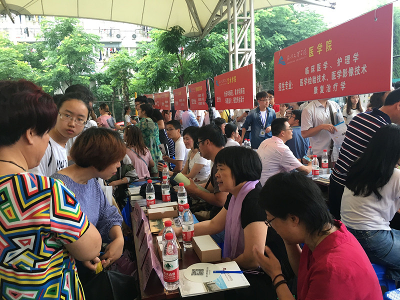 6月22日上午,2018年浙江省本专科院校招生咨询会绍兴站在我校南山校区举行,金沙官网学工书记、各专业主任、学生科老师带队驻场接受考生及家长现场咨询。江浙的梅雨淅淅沥沥,浇不灭考生及家长前来咨询的热情,咨询会现场热闹非凡。