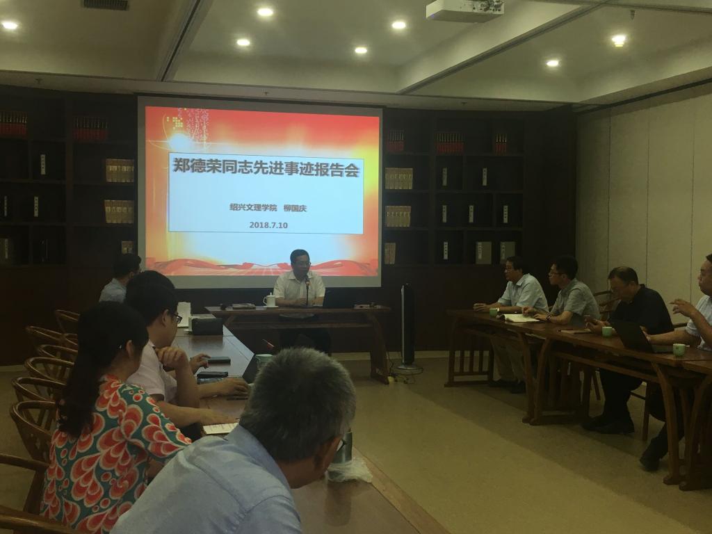 7月10日下午,校党委委员、院党委书记柳国庆教授受邀为浙江省委党校党史党建教研部全体老师作“郑德荣同志先进事迹”专题报告。报告会由党史党建教研部徐彬主任主持。