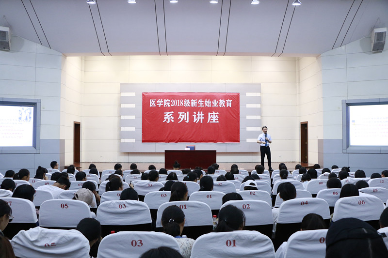 9月6号下午,金沙官网新生始业教育之“院长、书记系列讲座”在铁城科技馆拉开帷幕。金沙2004路线js5院长、校附属第一医院院长郭航远教授给2018级全体新生上了开学第一课“人文是医学之根”。