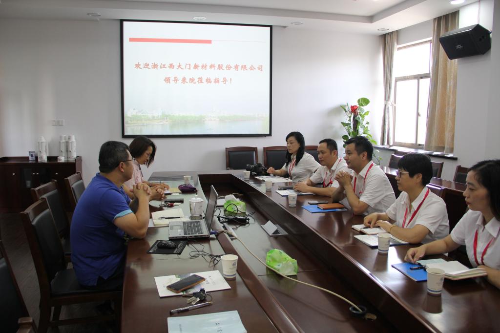 上午,浙江西大门新材料股份有限公司党支部书记戴惠金携各支部委员一行5人前来金沙官网考察交流基层党建工作。院党委副书记袁油迪,司法鉴定中心、办公室相关人员陪同座谈。