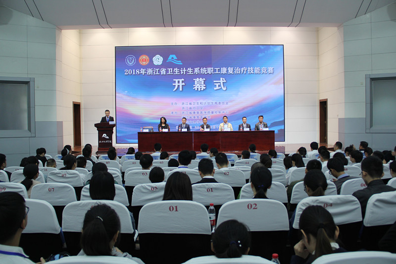 上午,2018年浙江省卫生计生系统职工康复治疗技能竞赛开幕式在我校铁城科教馆隆重举行。副校长寿永明,浙江省卫生计生委医政处副处长封巍,浙江省康复医学质量控制中心常务主任、浙江省康复医学会常务副会长兼秘书长叶祥明,绍兴市卫计委副主任凌秀凤,新金沙2004路线js5附属医院筹建工作小组组长胡学建,金沙2004路线js5副院长张剑出席开幕式。开幕式由浙江省康复医学科治疗部主任谭同才主持。