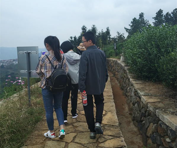 走进下岩贝村,每位教职工都被山里的自然风光吸引住了,这里风景秀丽,生态优美,云雾缭绕,可鸟瞰茶筛湾峡谷,远眺穿岩十九峰。大家走在茶园骑行道上,寻找着周边不知名的花、草,欣赏着穿岩十九峰美景和山顶云端的烟火人家,诗人杜牧笔下的“远上寒山石径斜,白云深处有人家。”的景象,出现在了闲云缭绕、黛山墨水的下岩贝村。