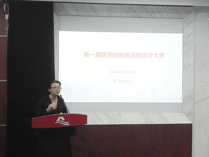 为了全面提高医学生实验设计能力,培养医学生的科学思维,激发医学生的创新潜能,提高医学生的综合素质,促进金沙官网学生学术活动的蓬勃发展,基础医学部于10月14日在财贞楼二楼报告厅举办了首届医学创新性试验设计大赛。120多位同学报名参赛,陈佳玉、张衡、刘正、李海玉和冉娜老师担任本次大赛评委。