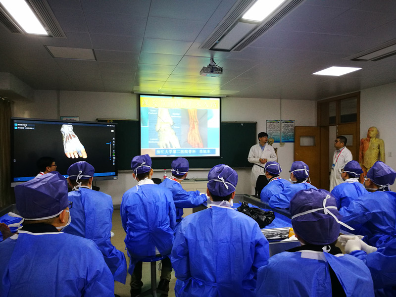 学习班邀请浙江大学附属第二医院足踝外科专家苗旭东教授、诸暨市人民医院邵汝谊主任、绍兴市中医院章宁杰主任和吕佐主任担任主讲老师,金沙官网解剖学教师刘文庆、胡章颜担任辅导老师。来自绍兴、宁波等地各大医院20多位学员参会。